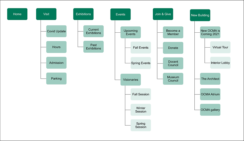 We wanted to converse with OCMA stakeholders and conduct an interview to understand their business goals. We were unable to get a hold of them so we had to understand their brand through the content posted on the website.